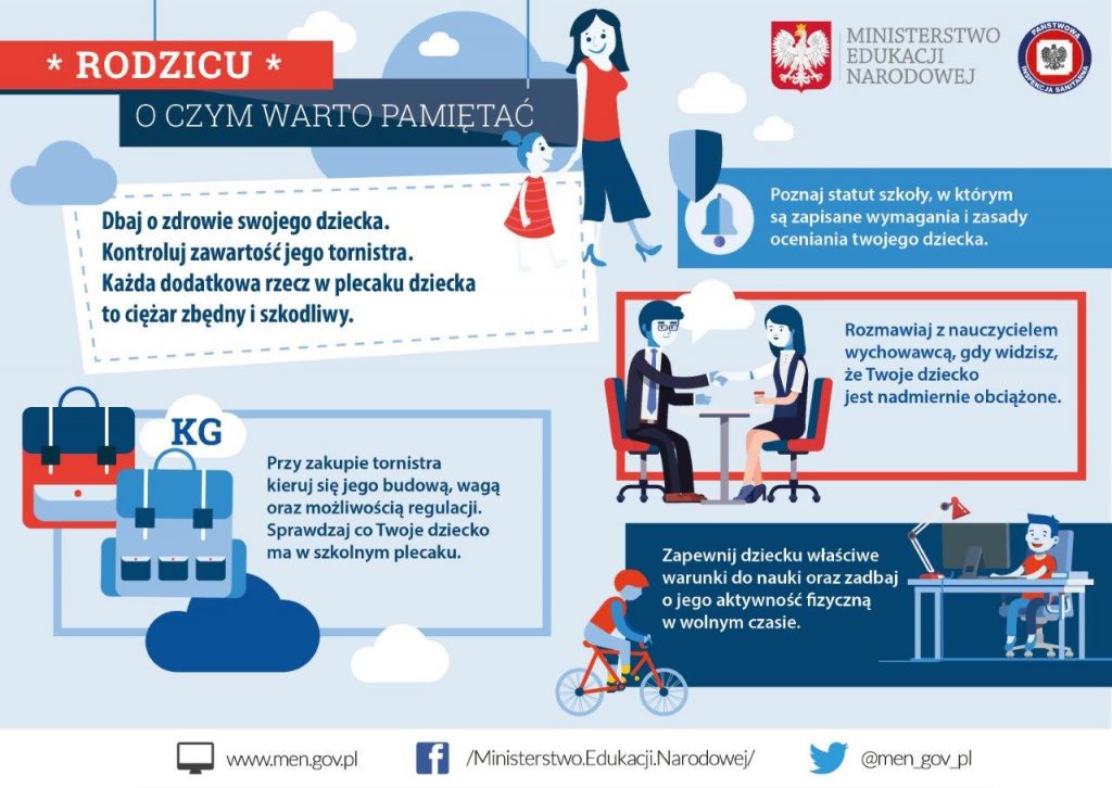 • rozważnie dobieraj wyposażenie – zeszyty, piórnik i inne potrzebne przybory niech będą jak najlżejsze.